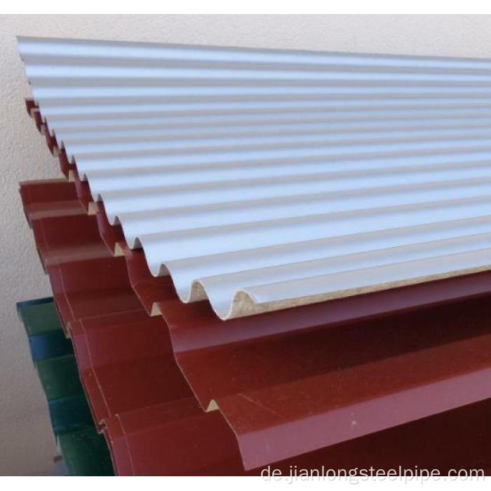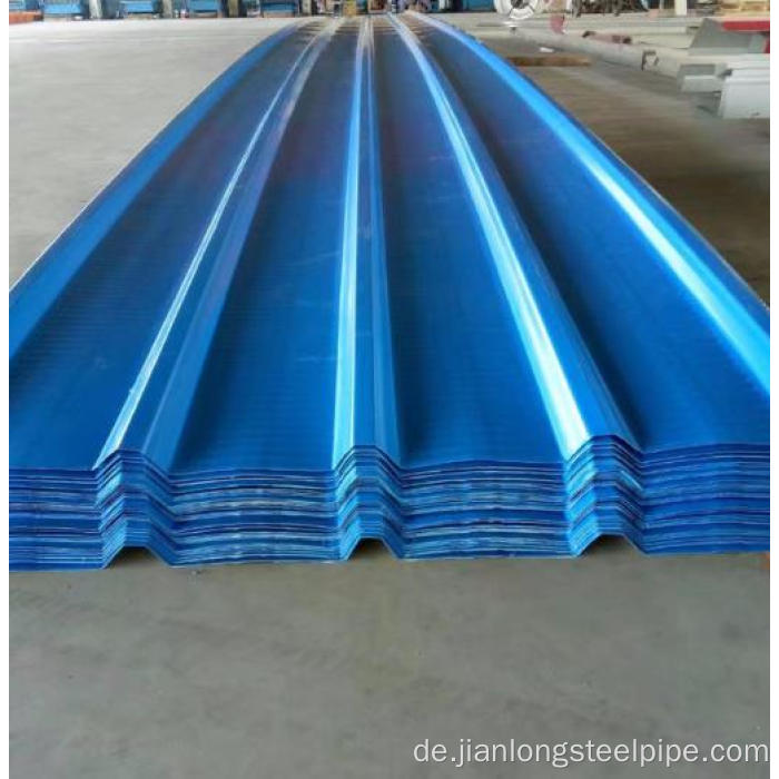 Dachblech, auch als Profiled Steel Rood Fliesen bekannt, ist eine profilierte Platte aus Farbstahlblech oder verzinkter Stahlblech oder Galvalume -Stahlblech, die in verschiedene Wellenformen gebogen ist. Es gilt hauptsächlich für Dach-, Wand- und Innen- und Außenwanddekoration von Industrie- und Zivilgebäuden, Lagerhäusern, speziellen Gebäuden und langspannigen Stahlstrukturhäusern. Es hat die Eigenschaften von geringem Gewicht, hoher Festigkeit, reichhaltiger Farbe, bequemer und schneller Konstruktion, Erdbebenresistenz, Brandschutz, Regenbeweis, langer Lebensdauer und Wartungsfreiheit.